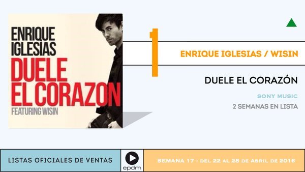 Enrique Iglesias es #1 en España con Duele el Corazon en la lista de canciones oficiales, iTunes , Spotify y Shazam.